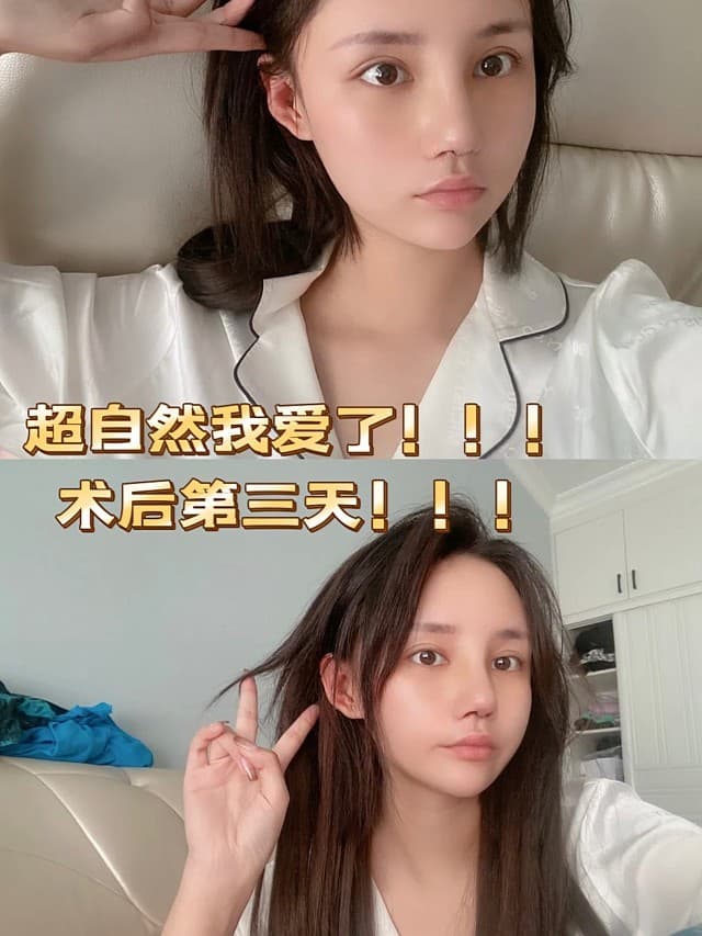 我请了一周的假期,我还以为要恢复一周……没想到第三天就恢复的好自然了!梁院果然牛啊哈哈,不是托,自己看照片!!!后面几天我就是在家里看剧、玩~~咨询小姐姐很贴心,一直微信问候我恢复情况,还叮嘱我买术后保养的疤痕膏等等~~太满意了,根本看不出做的!!医生说还会后期更佳自然,小小期待住了