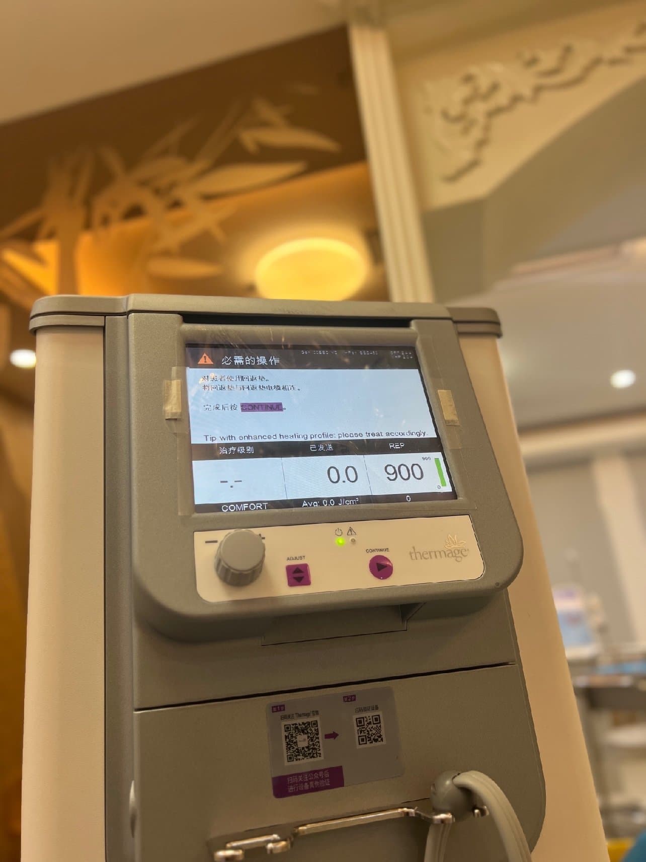 ,右边的脸线条流畅一点,能量从4开始打起,我是比较耐受的,在下颌线肉比较少的地方,疼一点,其他地方没啥感觉,这是我做过最舒适的一次热玛吉,最后重点部位能量打到了4.5,医生和记子还有头子我都在官网验证了,都是正品。