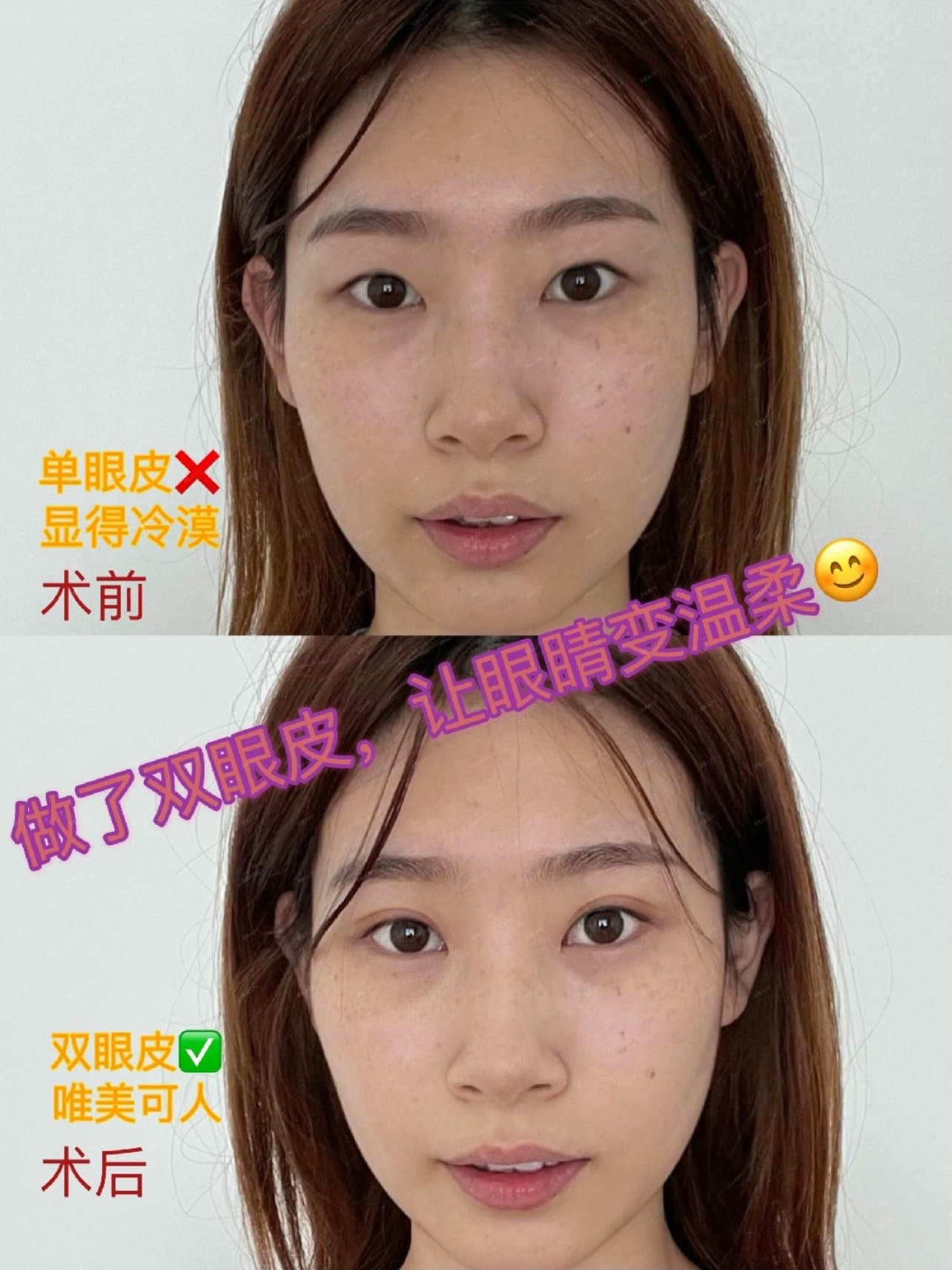 以前特别羡慕那些双眼皮的姐姐,不管是画眼影还是素颜,眼睛都很有神,很喜欢双眼皮带来的层次感,现在我终于也有双眼皮啦,还是宛如妈生的那种,很自然,开心呀! 眼睛是心灵的窗户,所以这个窗户一定要装扮得美美的,做双眼皮真的真的不亏,反正是永久性的,不像玻尿酸那种针剂类的,需要定期补打,所以想要做双眼皮的小可爱们可以勇敢行动啦