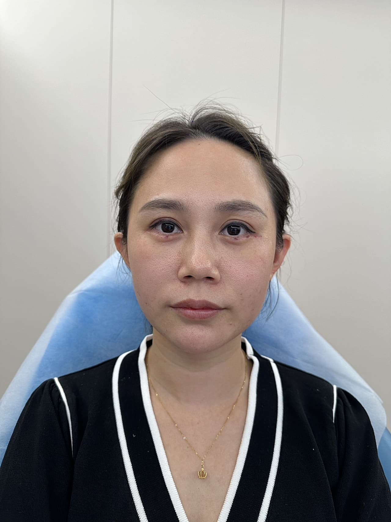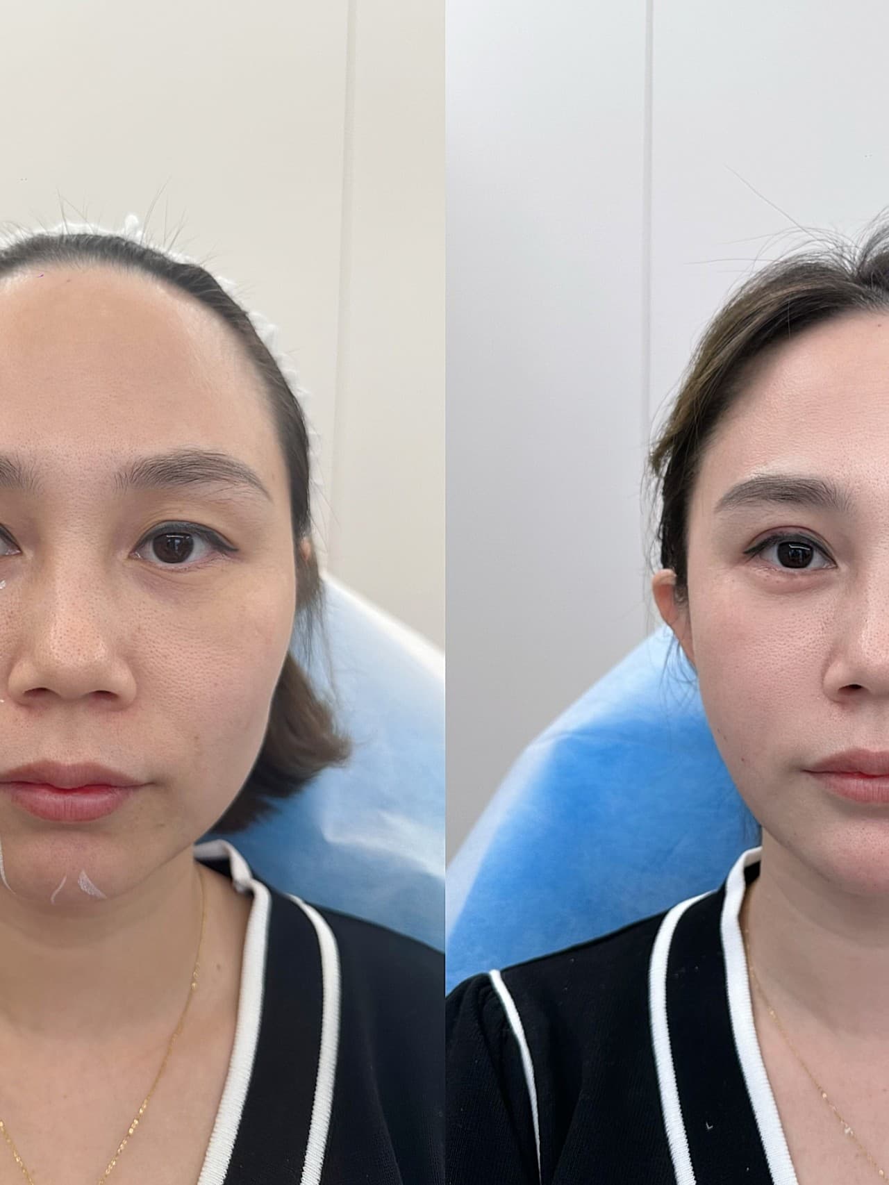 变美诉求:术前问题在于泪沟黑眼圈会显疲态,口周干瘪一外轮廓不流畅加上中庭较长,整体脸很显老。