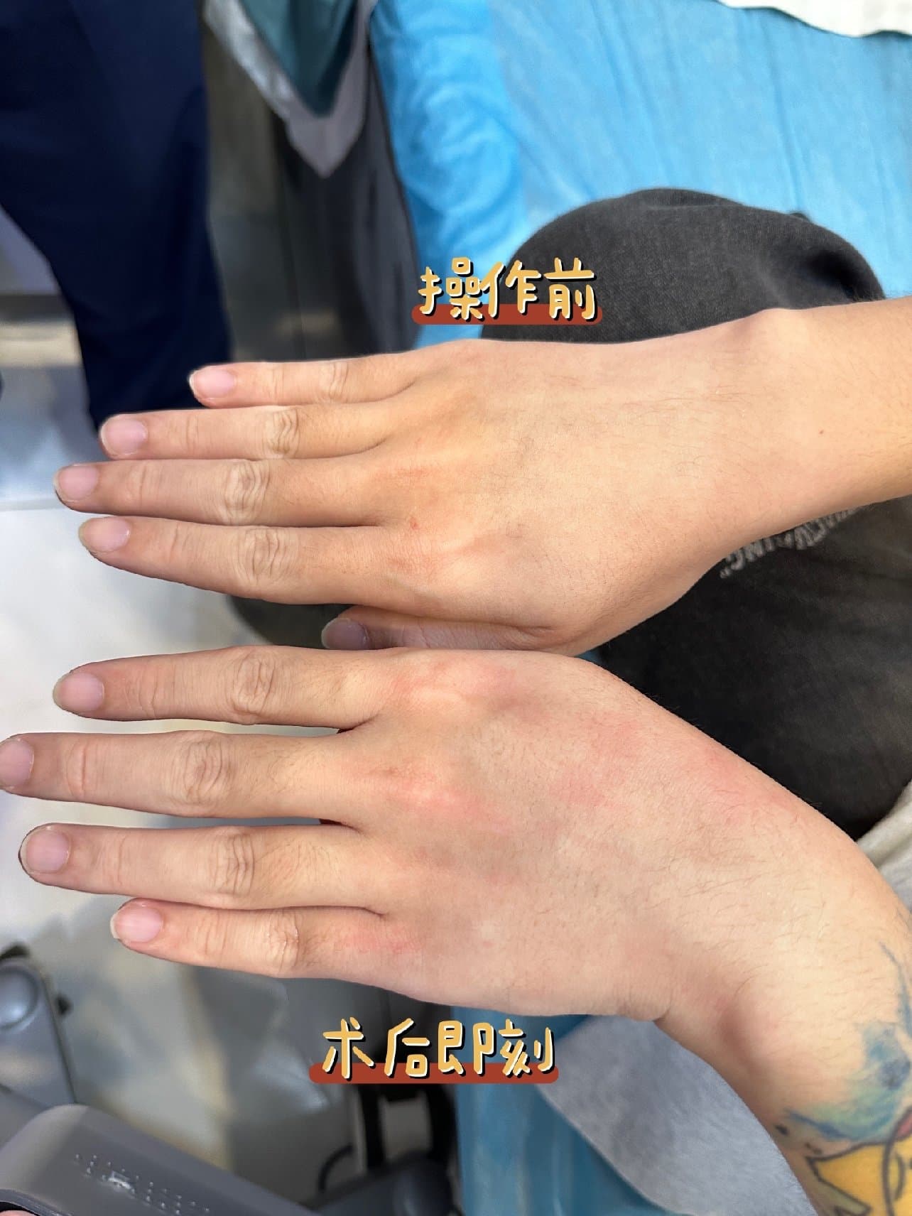 而后是开始做美美光,美美光是医生操作的,我选择的部位是前脖 后脖 手背。