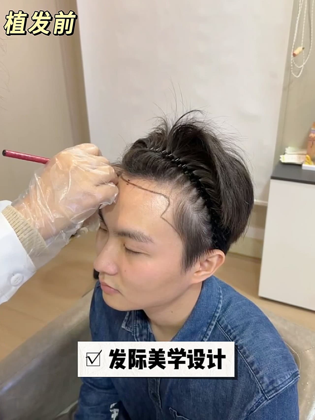 我是属于典型的M型秃,两边额角后移,显得脑门大。还特地去医院做了毛囊检测,医生说后脑勺头发资源还行,可以种。 我选的自然款带了一点美人尖,完全直的发际线会像假发