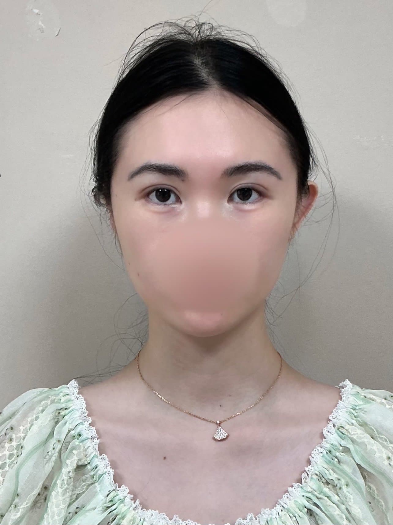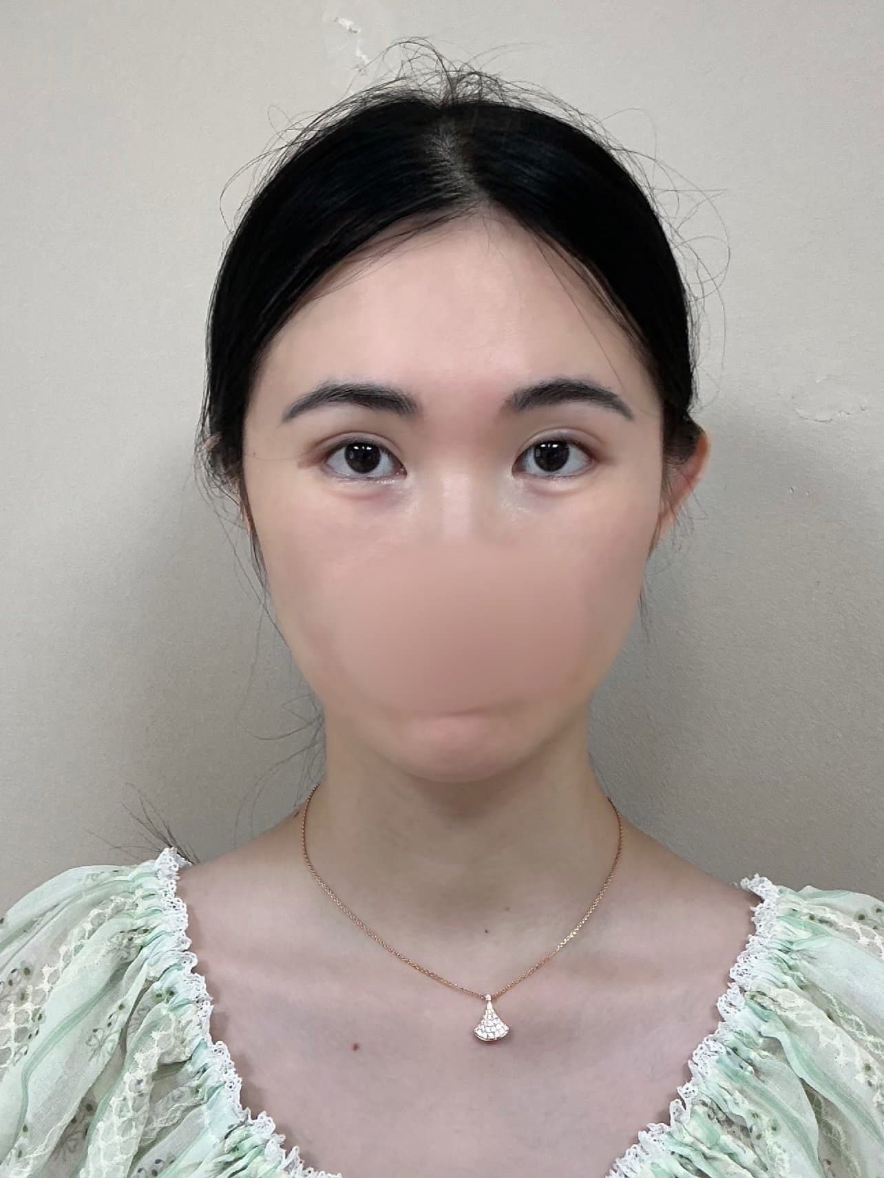 通过加大上头骨的体量感,显得下半张脸变小了,达到了头包脸的效果,术后一周内会有预期内的肿胀,但感觉可以承受。