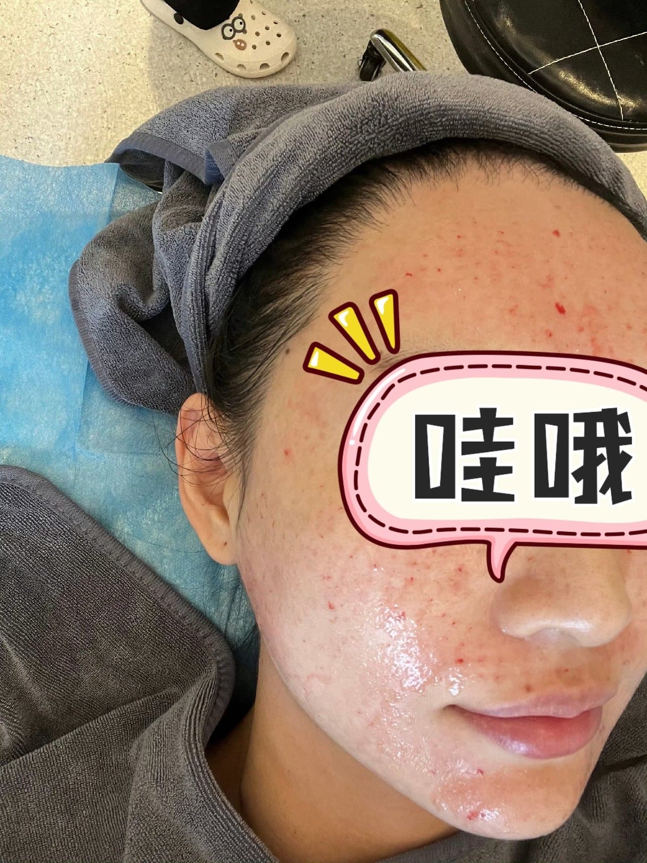 项目体验过程:1面诊 皮肤检测 消毒敷麻 操作 !我去医院先是面诊,跟大白面对面聊了聊。我皮肤泛红只能做去敏敏的,加上长了一堆痘痘,大白说皮肤PH值失衡,需要做个祛痘抗炎的,所以配了一个机打的和一个滚针的。大家做水光的时候,不要随便打,不要听医美咨询随便推荐,一定要面诊,看自己皮肤是什么问题。虽然做水光不是很麻烦,但也要根据皮肤问题,选适合的水光产品,解决相应问题,效果才明显。