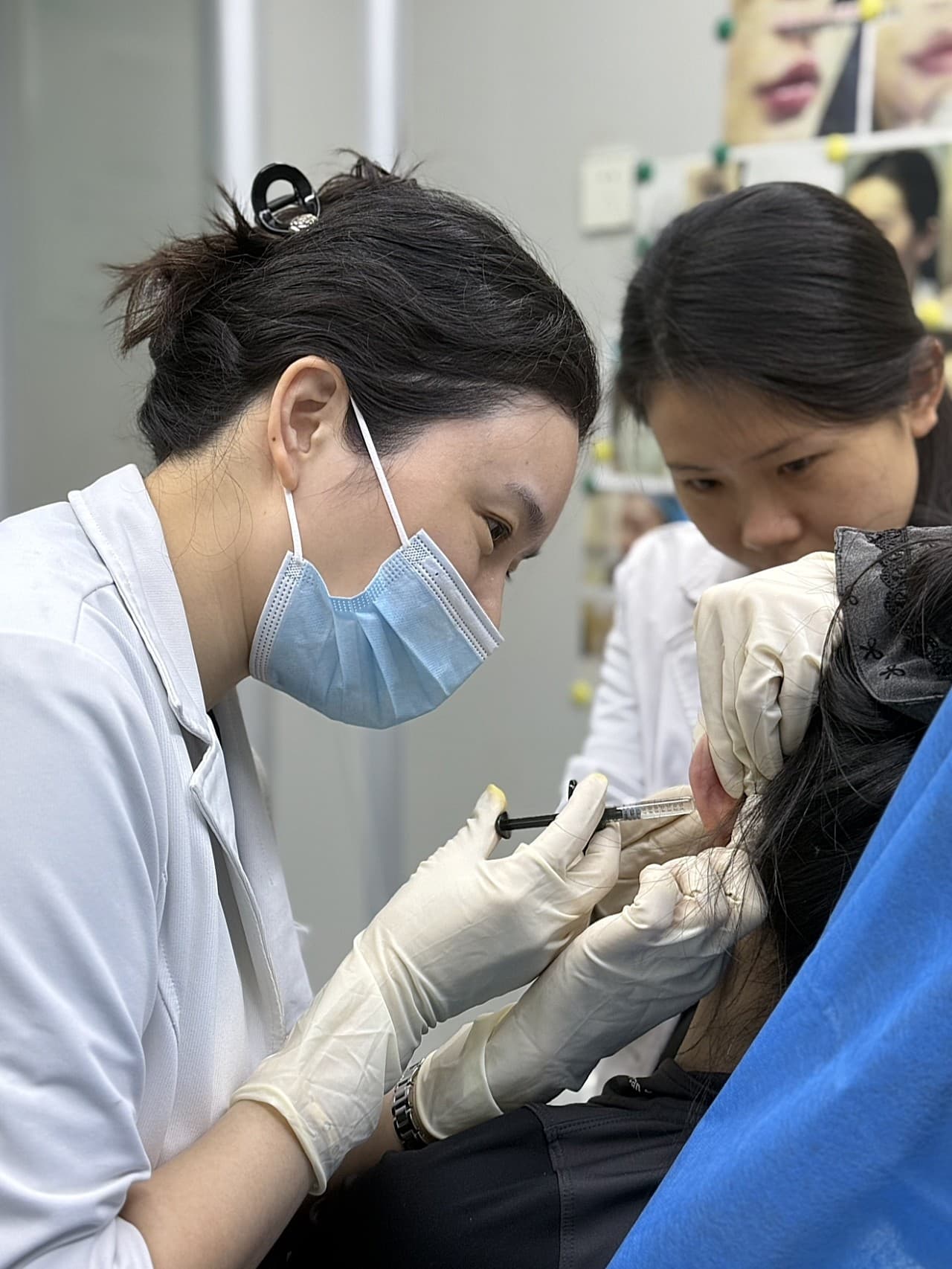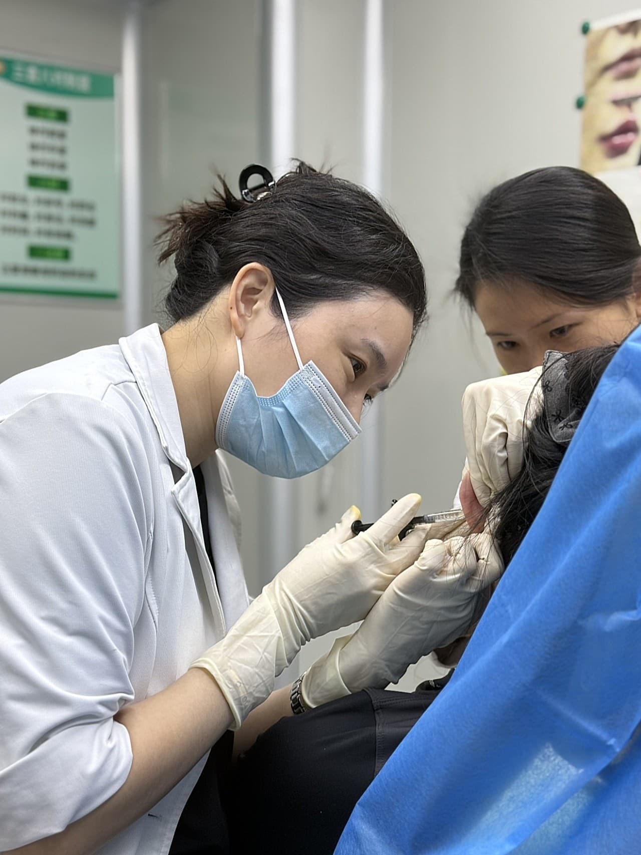 治疗过程:说实话躺下的时候还是有点紧张哒~护士先帮我全面消毒,然后一步步注射。能感觉到注射器轻轻推进,尤其是眼周和鼻基底位置有点酸酸的,但陈院长一直和我聊天分散注意力,手法也特别轻柔~整个过程其实很快,大概一小时左右就结束啦!