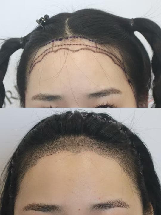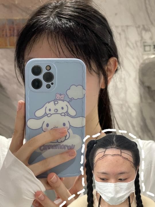 体验前变美诉求:额头蛮高的,头发全扎起来不好看,想要种一个圆润点自然点的发际线项