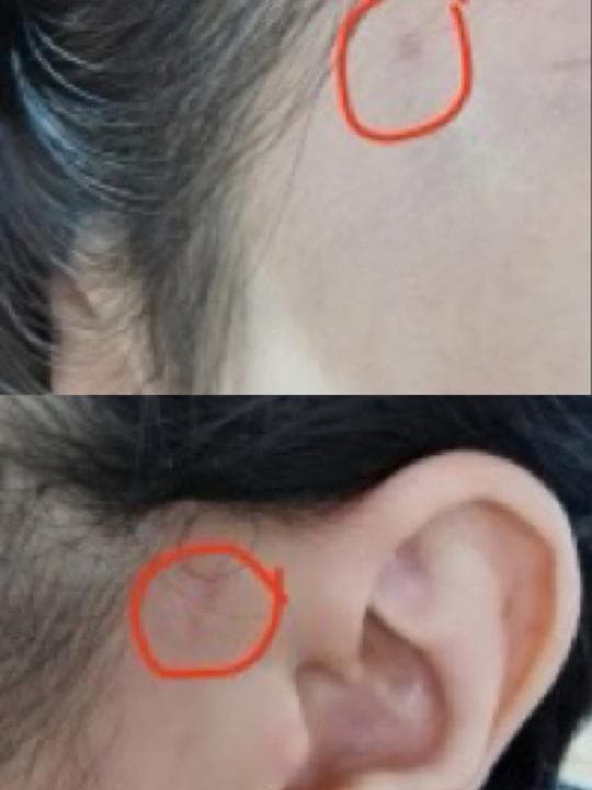 体验前变美诉求:脸上一共四个眼。有两个是去年12月做线雕留下的,在左右耳前各一个,