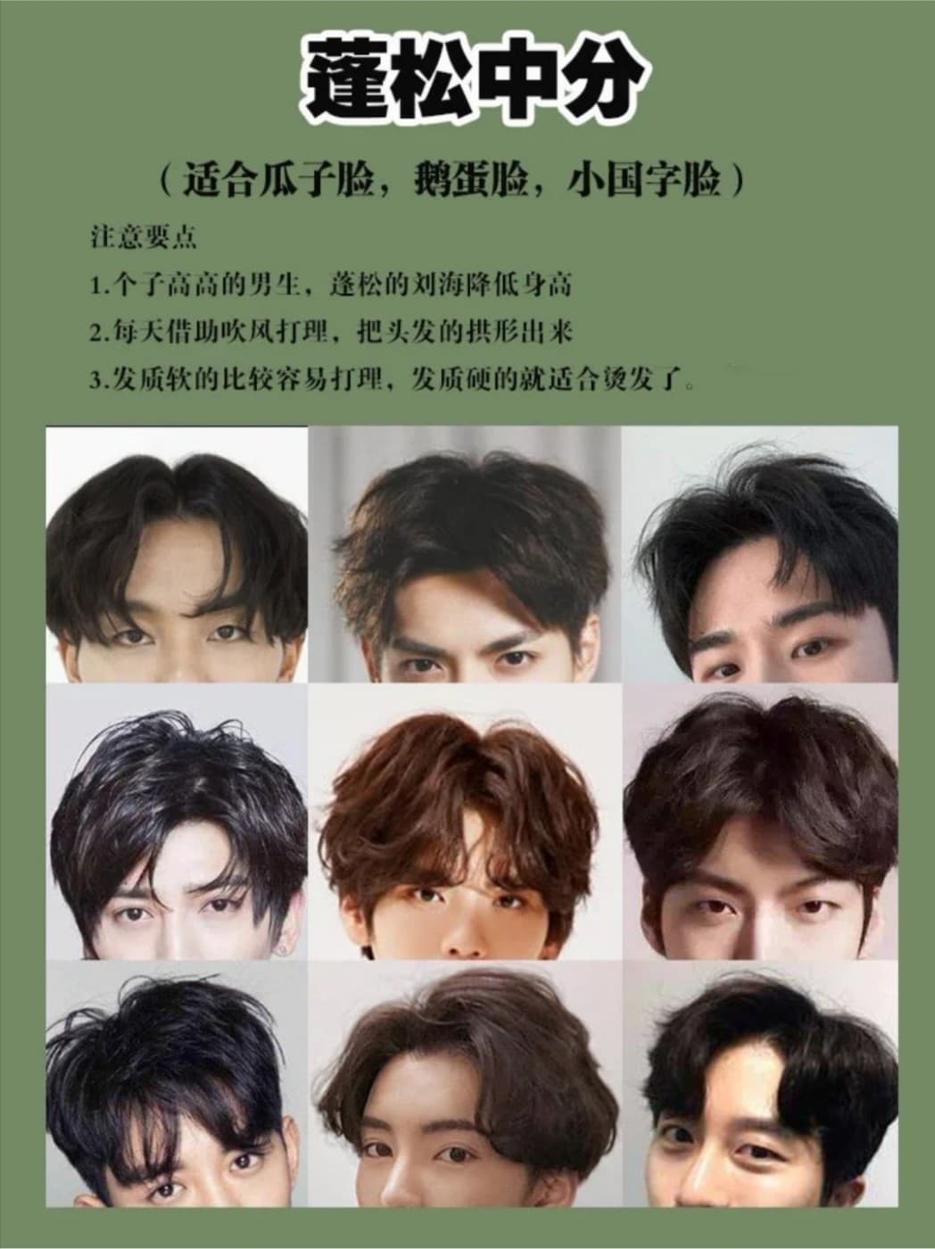 适合:不是胖胖的脸,小脸都是适合中分的●时尚寸头