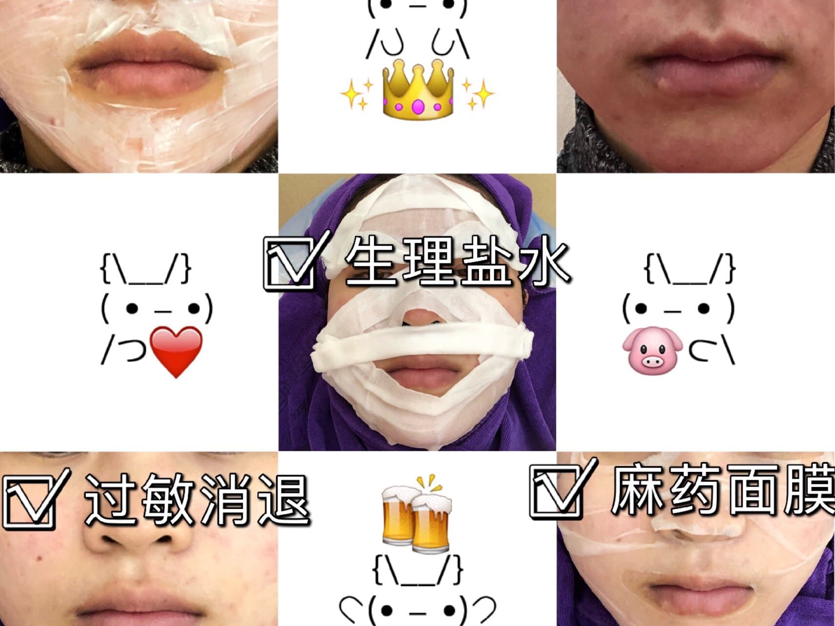 🌟然后开始敷麻药,敷了20多分钟,我的脸对麻药过敏了,😱生理盐水敷了20分钟褪红后,又改敷30分钟麻药面膜,就这样……我敷了一个多小时的麻药……😑
