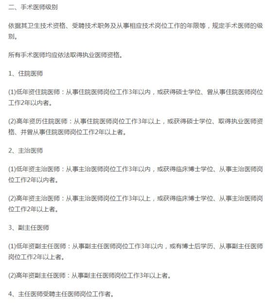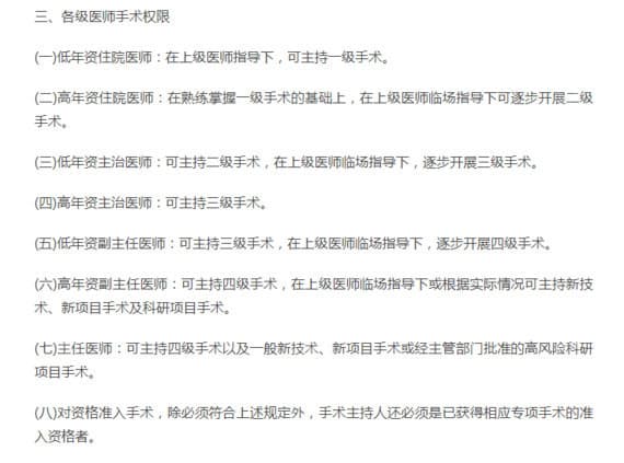 各级医师手术权限