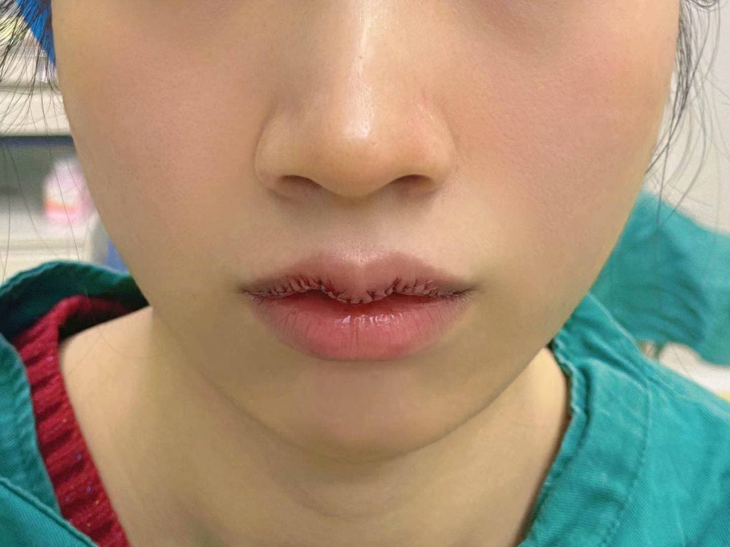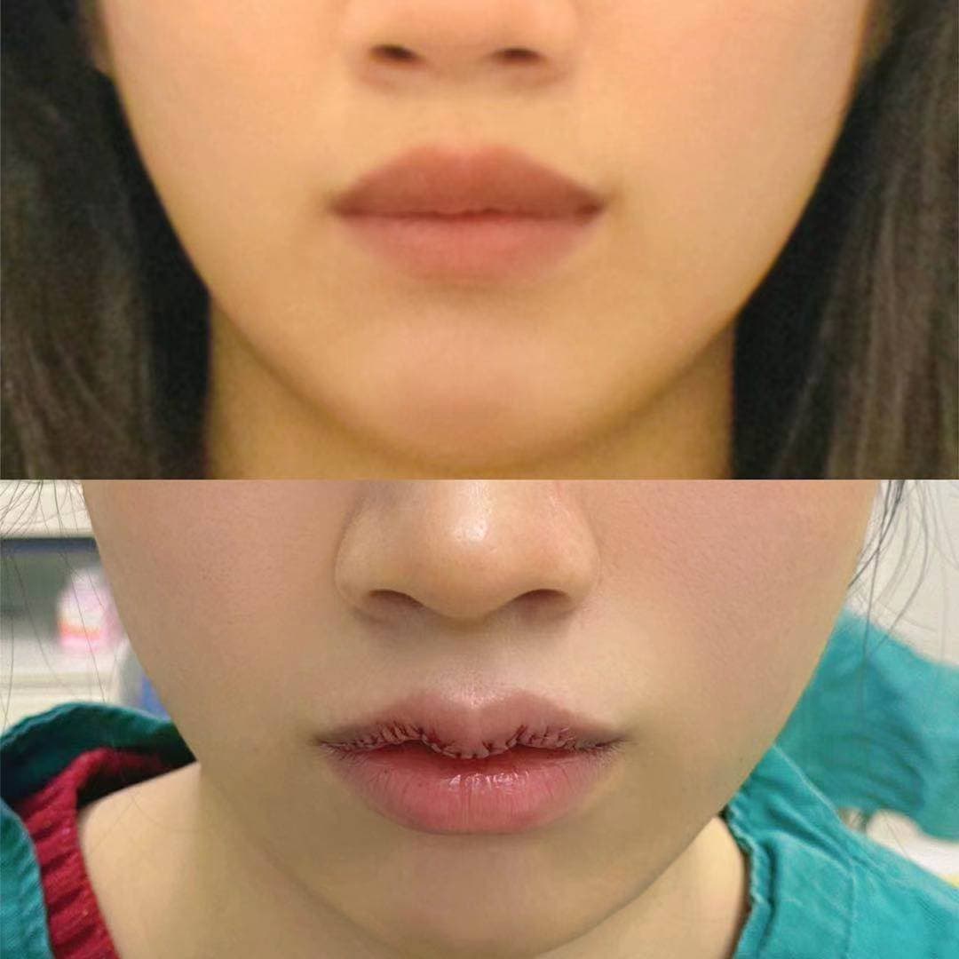 自己拍的术前截图后比较模糊了,当时拍的时候也没太注意,我嘴巴天生上唇就是比较厚而