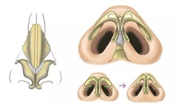 如果是由于鼻翼较厚或鼻翼沟上方过于丰满,那么可以通过切除鼻翼软骨上面部分脂肪和结缔组织,必要时切除部分鼻尖软骨,使鼻部组织显得纤细,小巧玲珑。