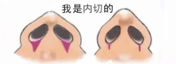 采用内切法做的鼻翼缩小手术,在外表看是没有疤痕的,因为内切法的疤痕就在里面,所以相对于疤痕在外面的外切法来说,更加隐蔽。
