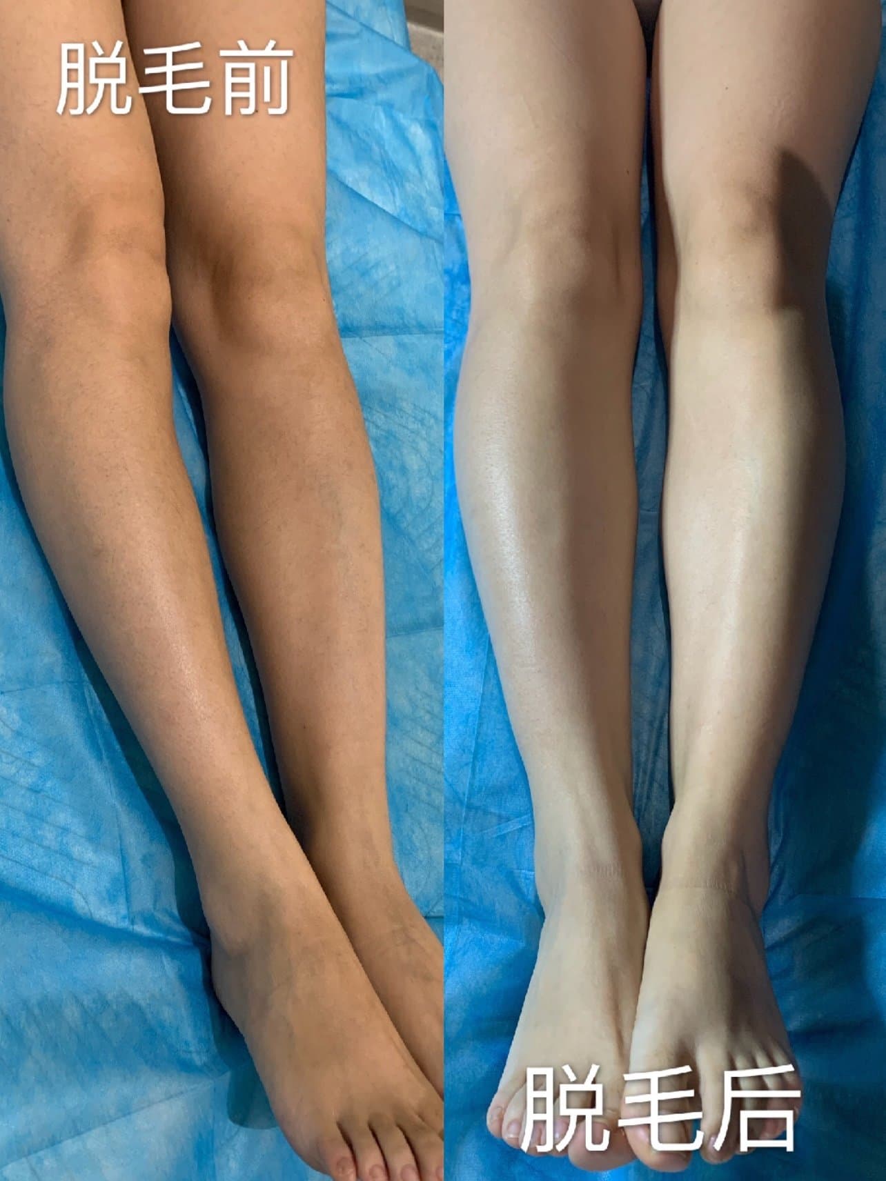 [:162]体验后效果:脱完毛感觉腿部肤色立马亮了一度。刚脱完毛不可以洗澡、使用磨砂膏、搓澡等,避免损伤皮肤。十天后,再来和大家分享剩余项目。