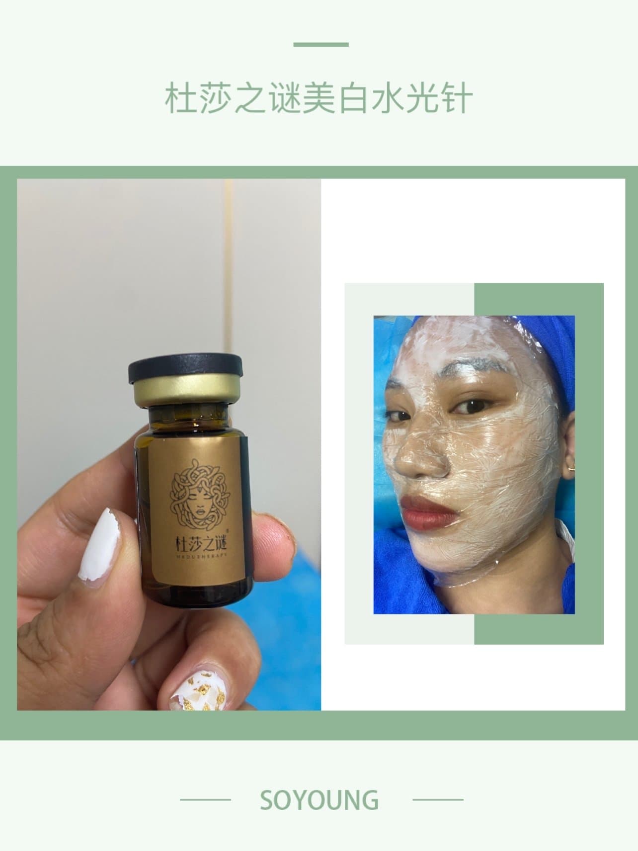 😍😍医导领着做的visa了解了自己的皮肤状况!然后就是常规的卸妆敷麻药!医生给我看了杜莎之谜美白药品,5ml用的水光机,剩下2ml医生给我做的滚针、并没有漏多少药!体验感不错!医生有叮嘱注意事项。每一天两贴面膜是必不可少的。