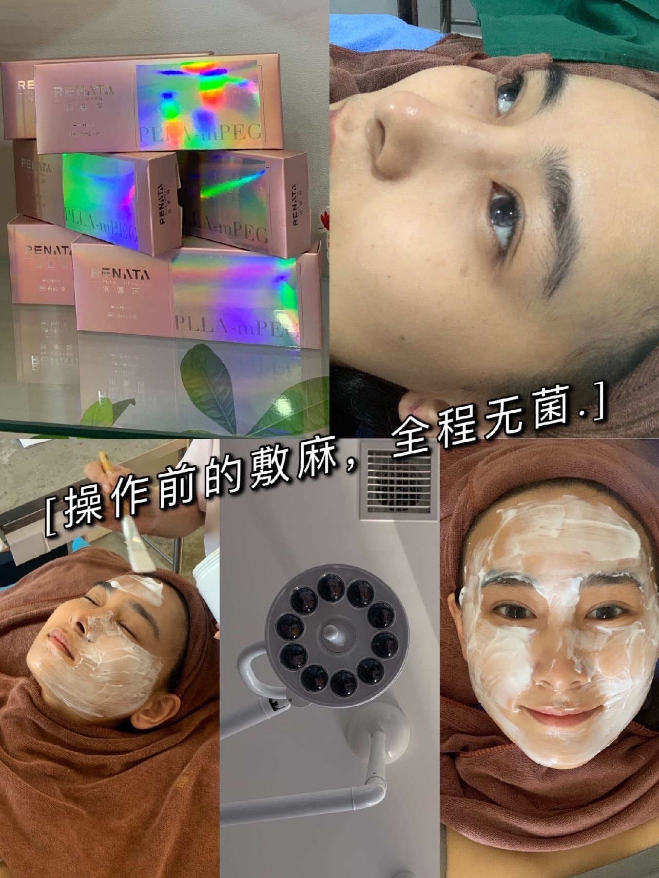 🌈麻药敷完以后,护士小姐姐帮我清理,有种神奇的麻麻感觉,之后院长过来给我仔细的做了面部消毒(为了保持无菌环境,同行的姐妹被很严肃的赶出去了美容室,哈哈哈哈哈哈哈哈哈),再次和我确认药品和剂量,其中包含润娜塔4ml和玻尿酸2ml,大家在图里面可以看到喔