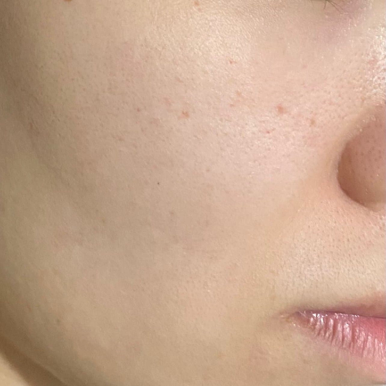 [:162]体验后效果:刚体验完润娜塔的时候,我的脸是有蛮多血点的。现在(第四天)脸上除了眼角,已经没有这些血点了。感觉恢复得还是很快的,参看图五脸颊照片。
