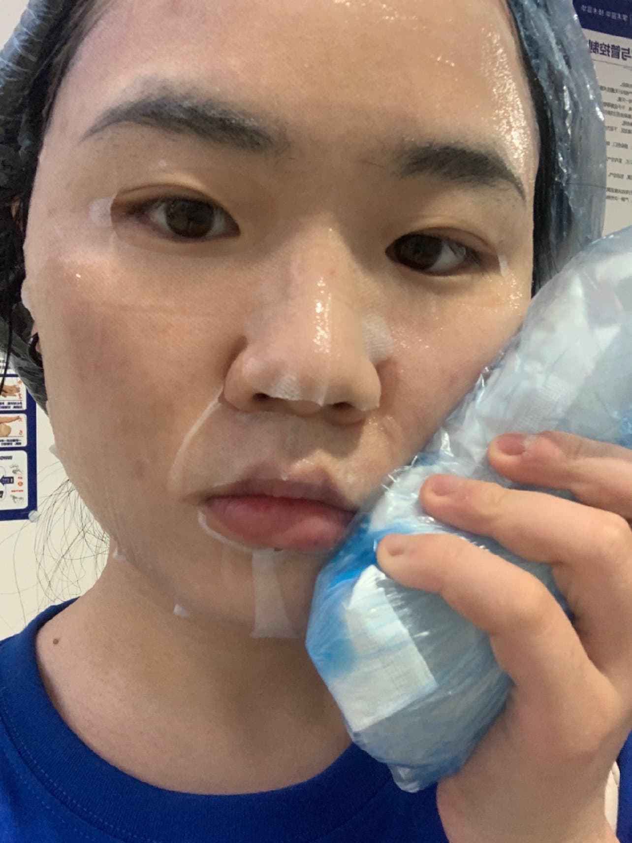 4.敷面膜,面膜上敷冰袋