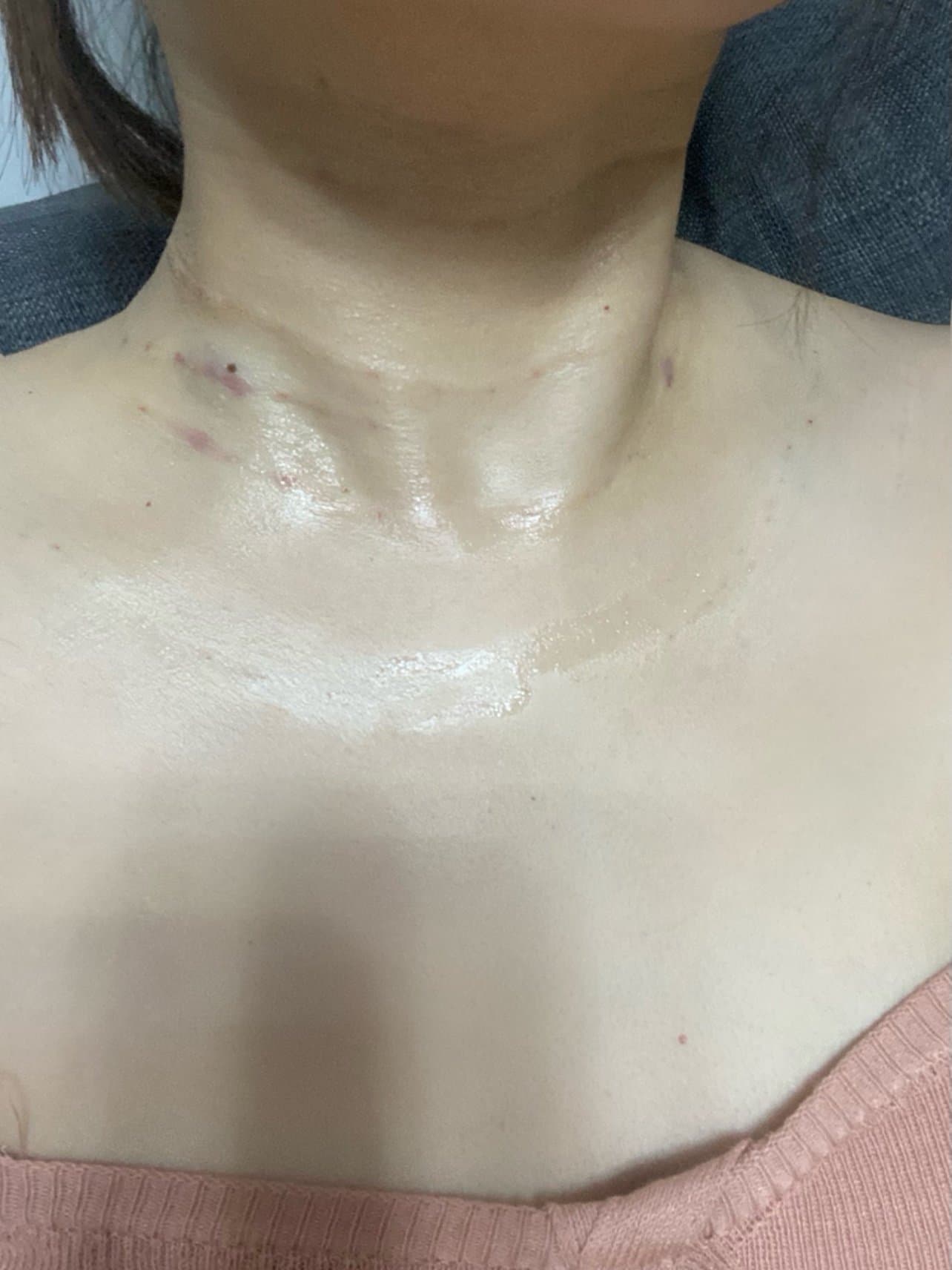 打完脖子都红肿了一圈。