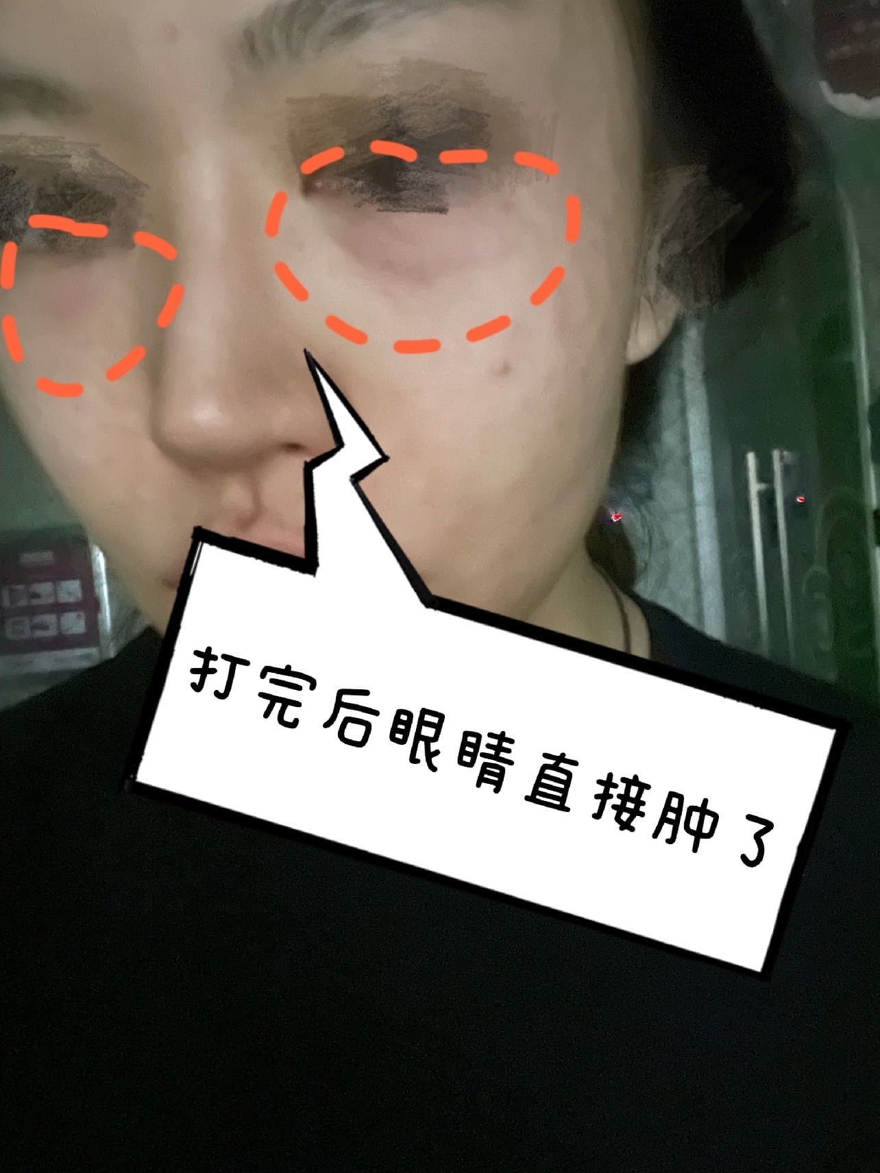 敷完了脸,即刻效果,眼睛无敌肿(如图)