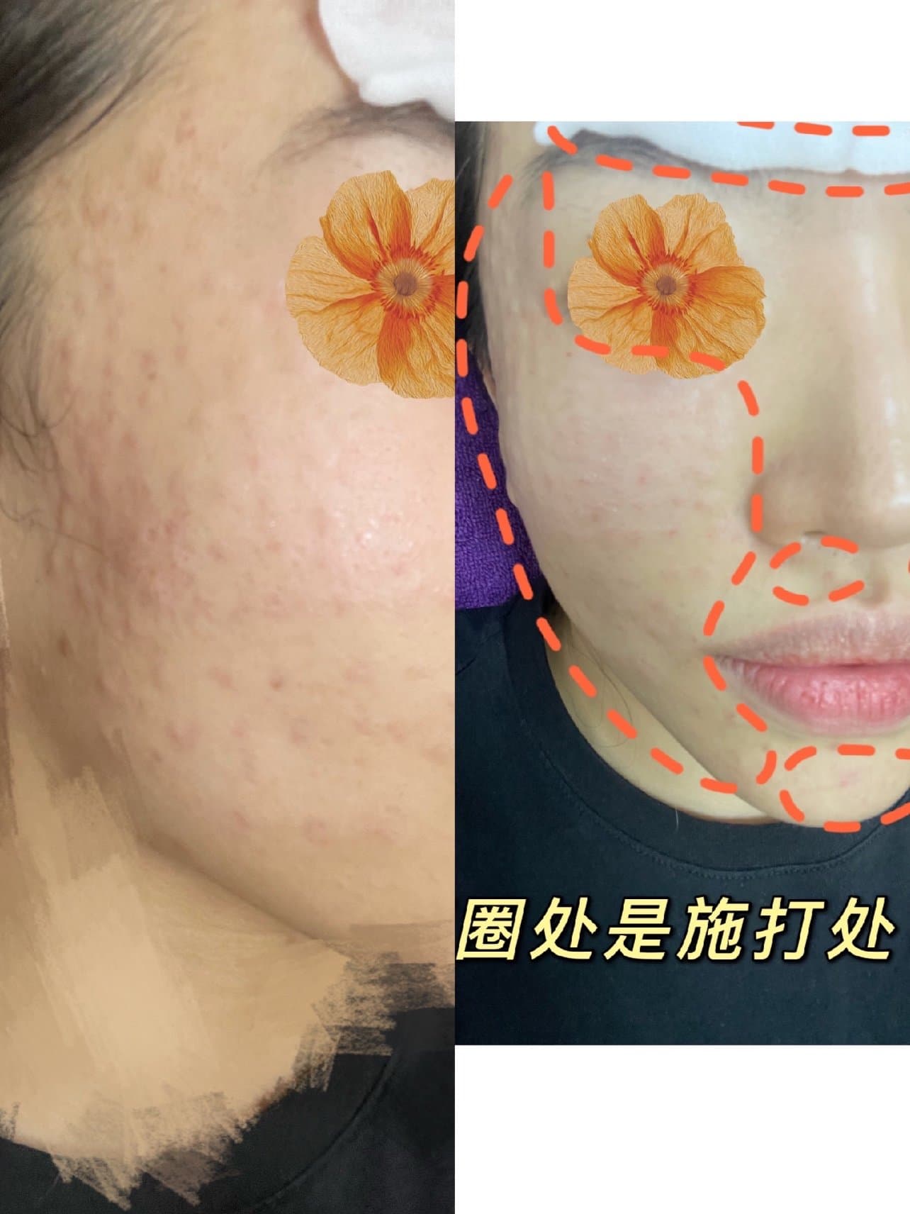 🔴施打部位:主要是脸颊。额头眉上一点点,下巴一点点,人中一点点(以前是全脸平均,这次主要打在两颊了)