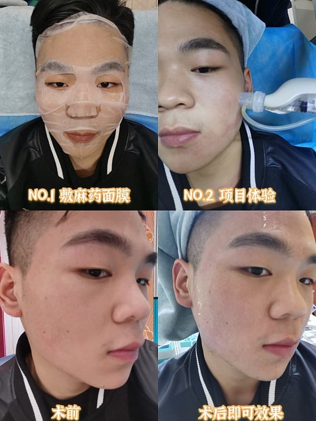 先是进行了面诊收获了很多干货,然后又带着我去做了皮肤测试,帮我做的小姐姐非常负责任讲了很多我的皮肤问题和怎么改善,又填写了一些基本信息之后,等了一会儿护士小姐姐带我去注射间,对我的脸部进行了消毒,然后就开始敷麻药面膜了〈第一次听说麻药面膜涨见识咯〉✌ 大概敷了有40分钟吧就见效果了,嘴的周围麻麻的,护士让我验好药之后主任就来亲自上手为我注射了,不得不说手法真的很好,根本感觉不到什么疼痛 🌝 主任在做的过程中还问我疼不疼,太贴心了🙊 做了大概有15分钟左右就已经注射好了,然后护士清洁了我脸部之后又敷了一贴富勒烯的面膜,然后就美美的结束啦 ✌
