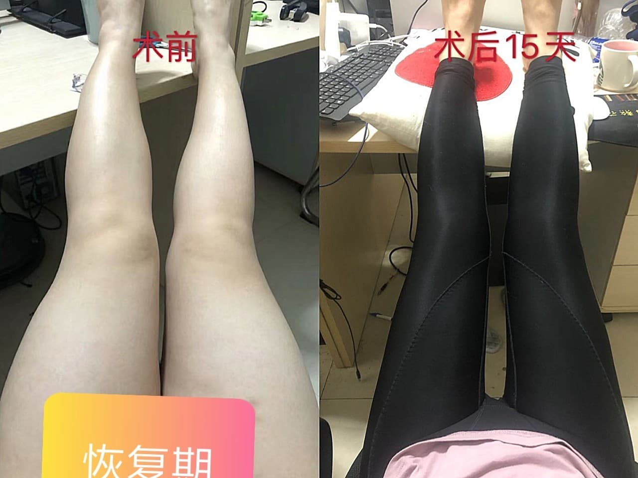 我现在小腿跟我大腿一样粗,大腿手术两个月之后,找了陈主任吸了小腿,局麻做的,手术感觉没有大腿吸脂好,局麻还是能感觉到痛的,我自己对手术比较恐惧,手术当中真的有点难熬,不过总算熬过来了