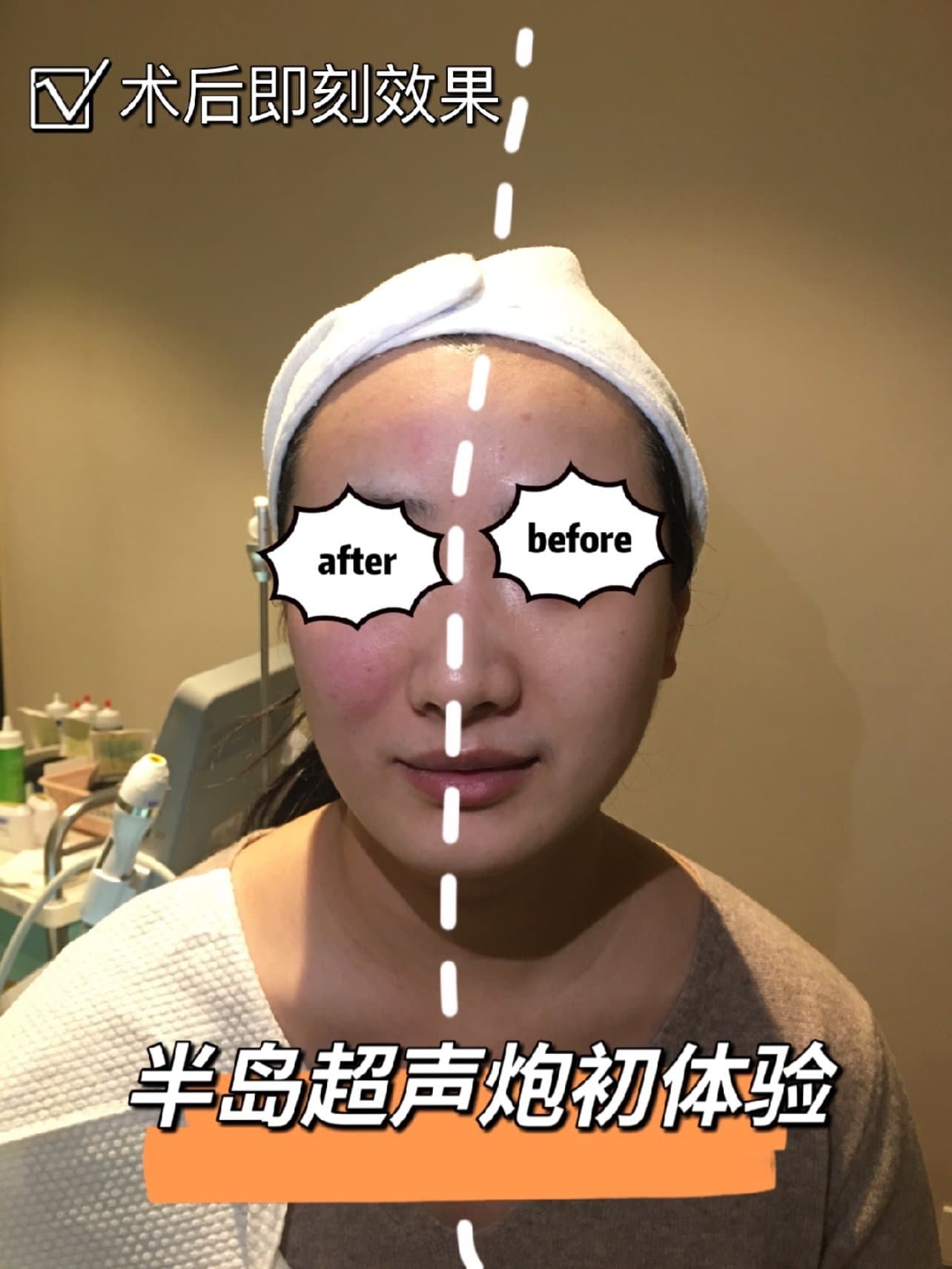 接着医生又给我用了【炮头】,用炮头的感觉有点像加强版的家用美容仪,没有什么痛的感觉,主要是烫的感觉,但只要医生手速够快,烫感也不明显,相较前面的刀头要舒服很多。