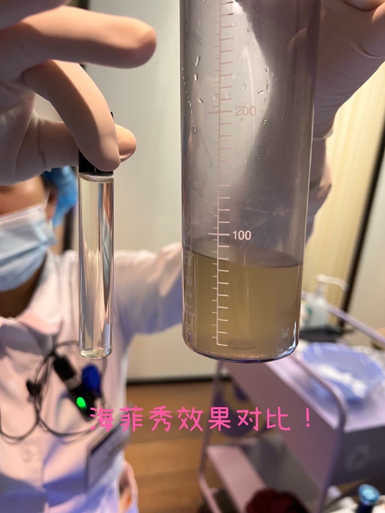 医生为了让我更直观的感受清洁后的对比,专程给我看了我清洁后的液体,一片浑浊,里面的脏东西都是我自己脸上被清洁出来的。不得不感叹,海菲秀的超好效果呢!