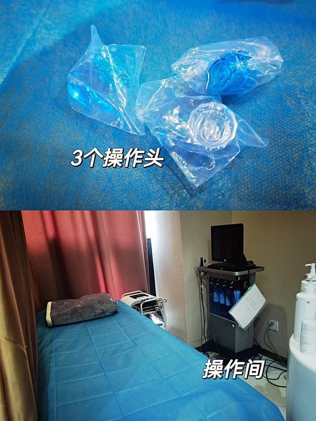 治疗前,护士小姐姐介绍了3个治疗罐,专门给看了3个未拆治疗头,询问是否贝类海鲜类过敏(治疗精华中有相关物质,如过敏不可操作),然后躺下开始操作。