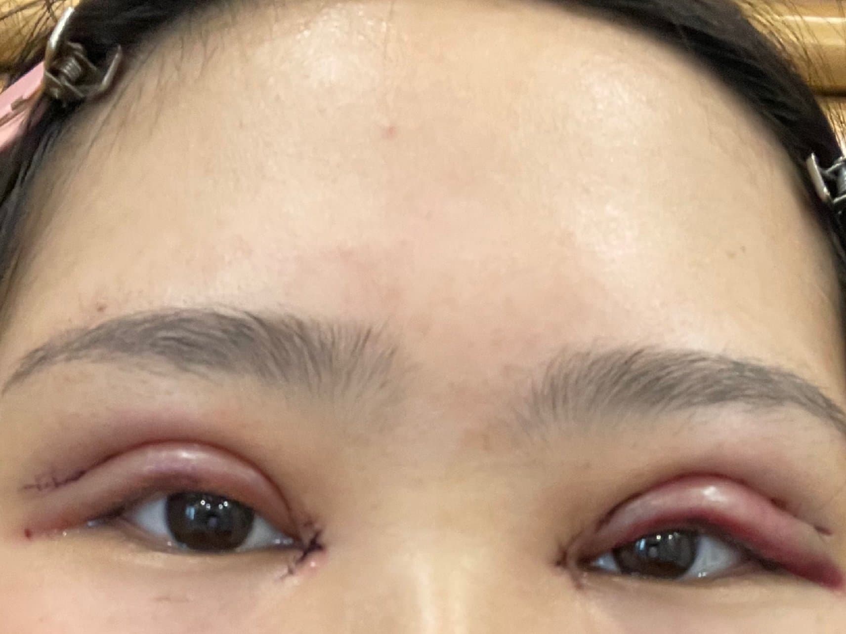 体验后效果:今天是第二天了,拆完纱布眼睛感觉好肿,虽然我不是很懂,但是我感觉我双眼皮形状好看,陈光院长真的很信的过等慢慢恢复吧