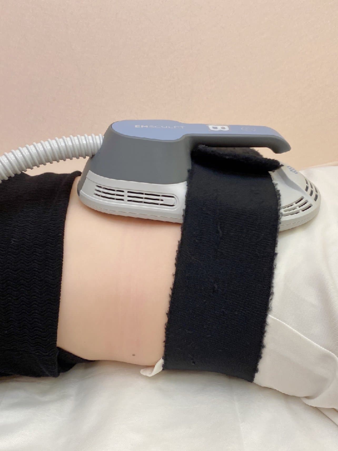 怕疼的小姐妹不用担心,操作起来很简单,并且不会有疼痛感,是完全可以接受的,我做的是腹部,因为小肚子不好看平时也不运动,就想塑形感受一下,机器的探头长得像熨斗,腰部绑上护腰绷带,然后再把探头放腹部,就可以开始了