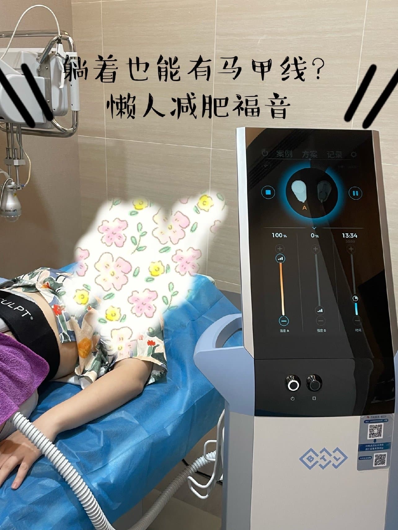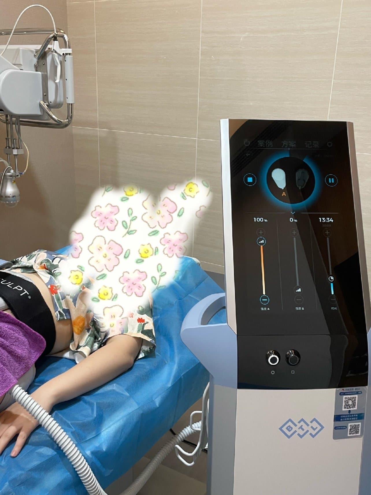 在体验过程中,感觉仪器在吸你的肚子同时伴随着一定程度的震动,之后仪器还会轻微的敲击你的肚子.这两种模式是交替进行的. 体验过程没有任何的不适,小肚子会有轻微的酸痛,和做卷腹时那种酸痛感很像. 我是体验的能量一百15分钟.
