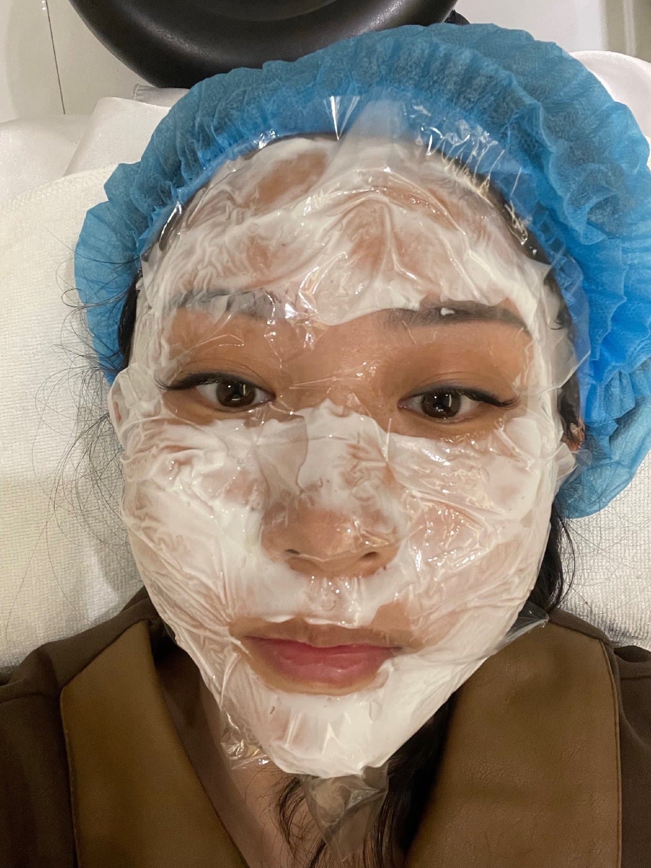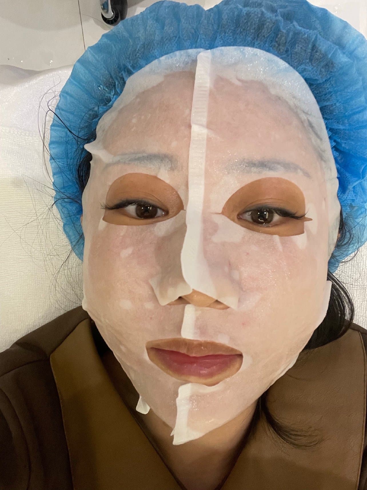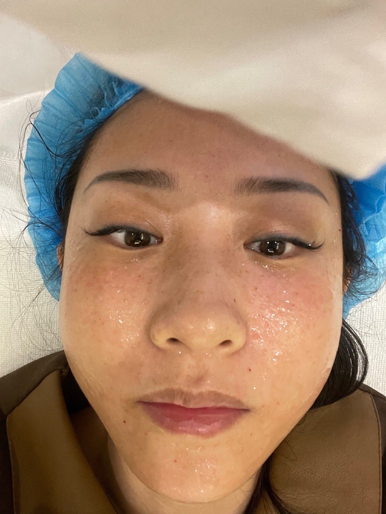 流程也很严密 去了查验核酸 这也是保护每一位到店的客户。首次来的话会建立一个档案,填写信息,我买的是新客首次体验1元的水光针 只有2ML,商家建议可以再买一支,这样就是4、5Ml了 全脸也就够用。我想着受一次疼还不如到位 所以又买了一个水光针,总共两支。选择好之后就带我先去拍照留档,带手术帽,然后就准备开始啦~ 麻药20分钟后 嘴边开始木木的了,就可以打水光了,周敏小姐姐很细心 会全程关注我的感受,打之前先给我看一下包装 是两盒,然后拆包注射,一开始就有一点点疼,不过也能忍,就是打到眼睛下面和额头边缘更疼一些,小姐姐也是很细心地询问我很疼吗,也会随时给我调整注射档位,会安慰我说马上就打完了, 全程跟我聊天 让我放松下来不那么紧张了。这里要特别说一下手术帽真的太贴心,不像其他店都是包裹的毛巾 做完头型都变了,我带的手术帽不仅包裹了头发而且保住了发型。最后还送了我修护让我抹着。
