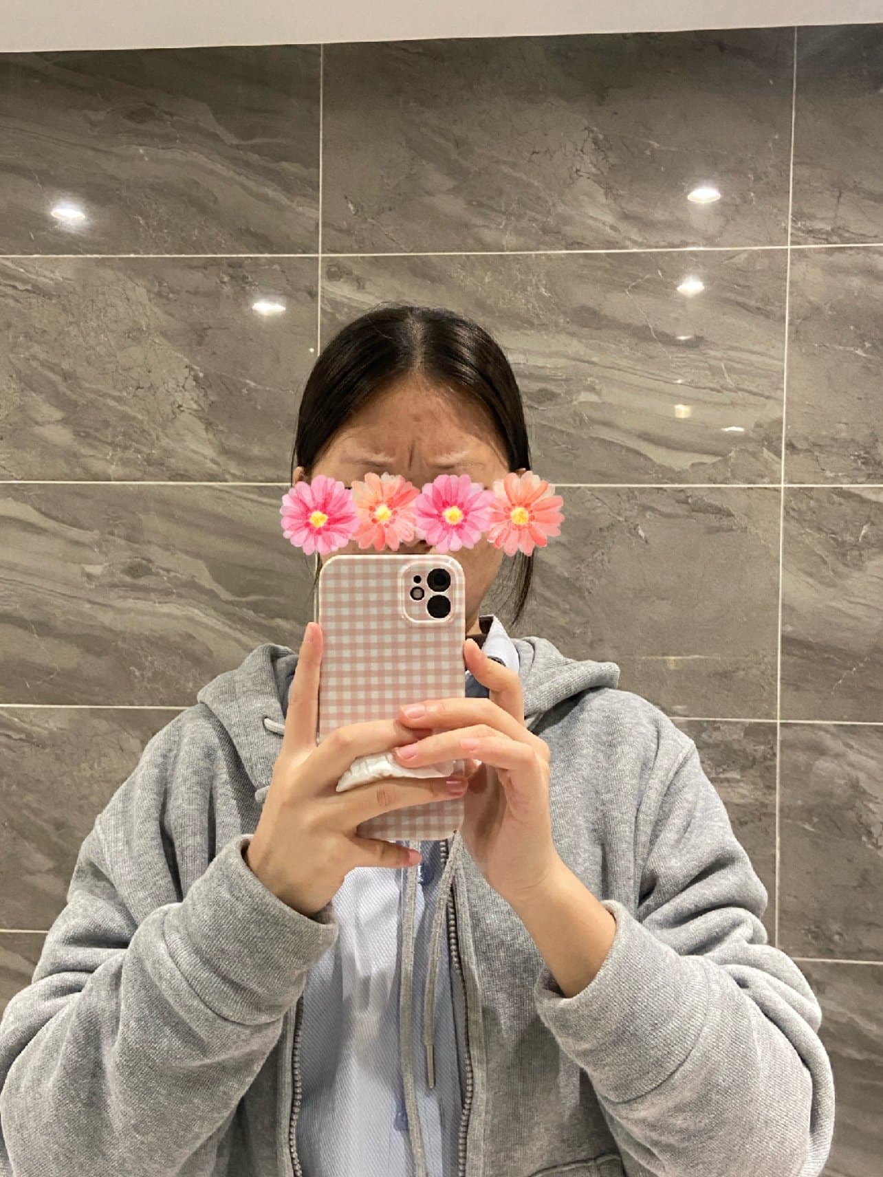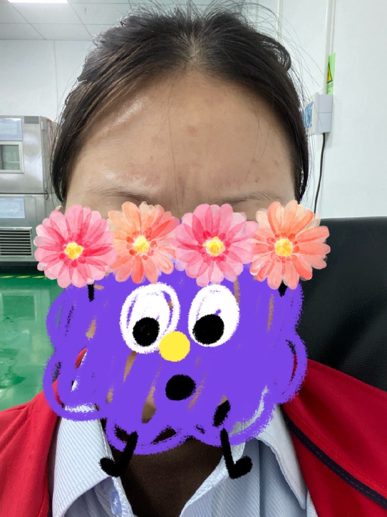 打完当场出来我就去洗手间看了一下额头有针眼跟还有纹正常的,还是有点点痛的,拍了照片。