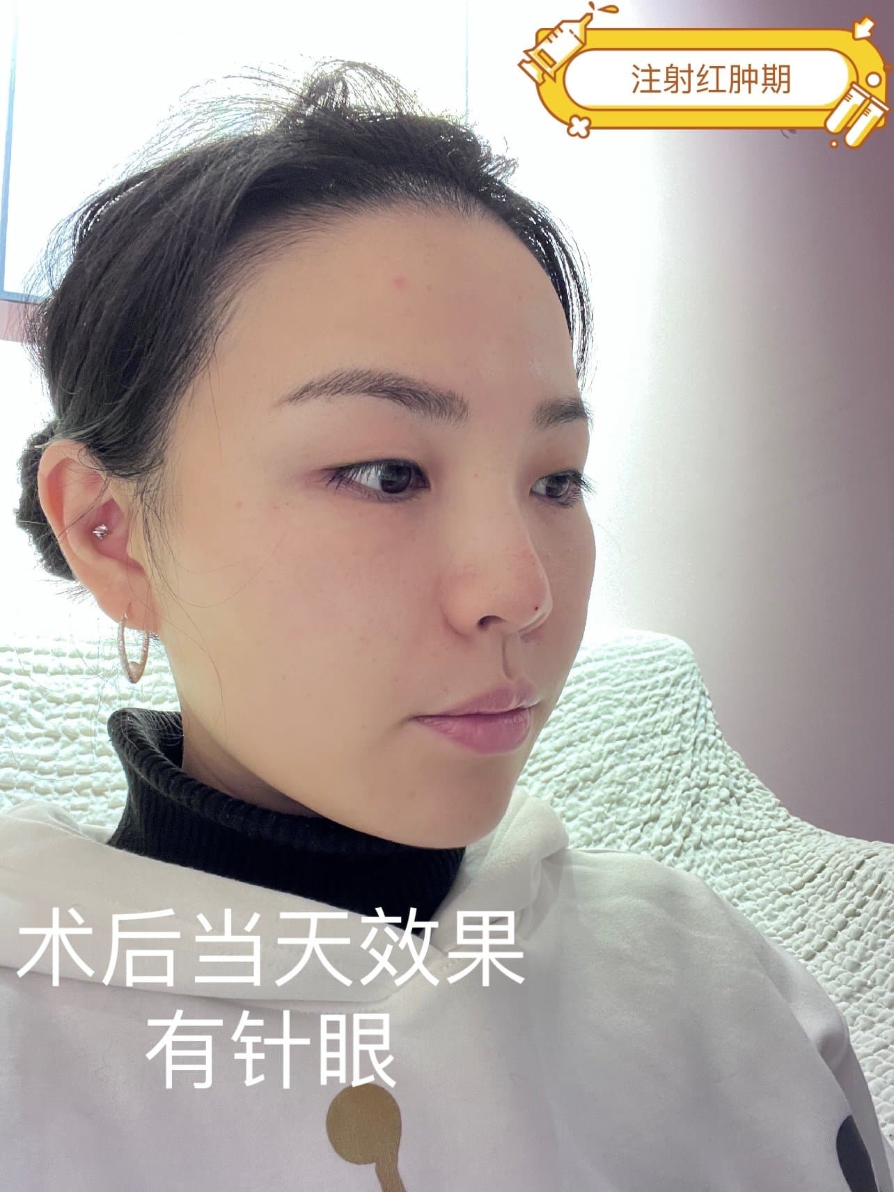 这是我第一次到军美打鼻子玻尿酸本来打算是用艾丽薇,但是朱院不建议我用爱丽薇,他说支撑性不好是中大分子比较容易吸水会变宽,所以我换了公主玻尿酸大分子打鼻子,打出来的效果挺自然的,我觉得还挺好,因为公主玻尿酸本身是含有0.6的麻醉剂,刚开始打麻药的时候确实很疼,因为我之前做了光子嫩肤,所以不能敷麻药,只能全程硬扛,我的个天哪,那酸爽,还好效果还不错,我比较满意,我鼻子中间有一点点凹陷,可能玻尿酸吸收了,然后这一次来填一下,然后把鼻尖打翘了一些整体效果感觉还挺不错的很自然,但是鼻子确实很疼。