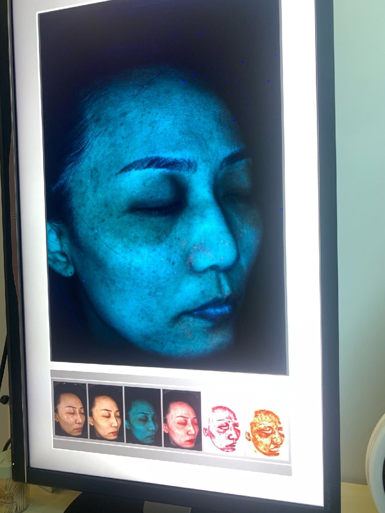 我是画着妆去的,护士姐姐给我卸妆的,卸完妆带我做了皮肤检测,我的皮肤状态不是很好,有很多斑斑点点,黄褐斑尤其严重,做完以后等着院长给我做m22黄金超光子。