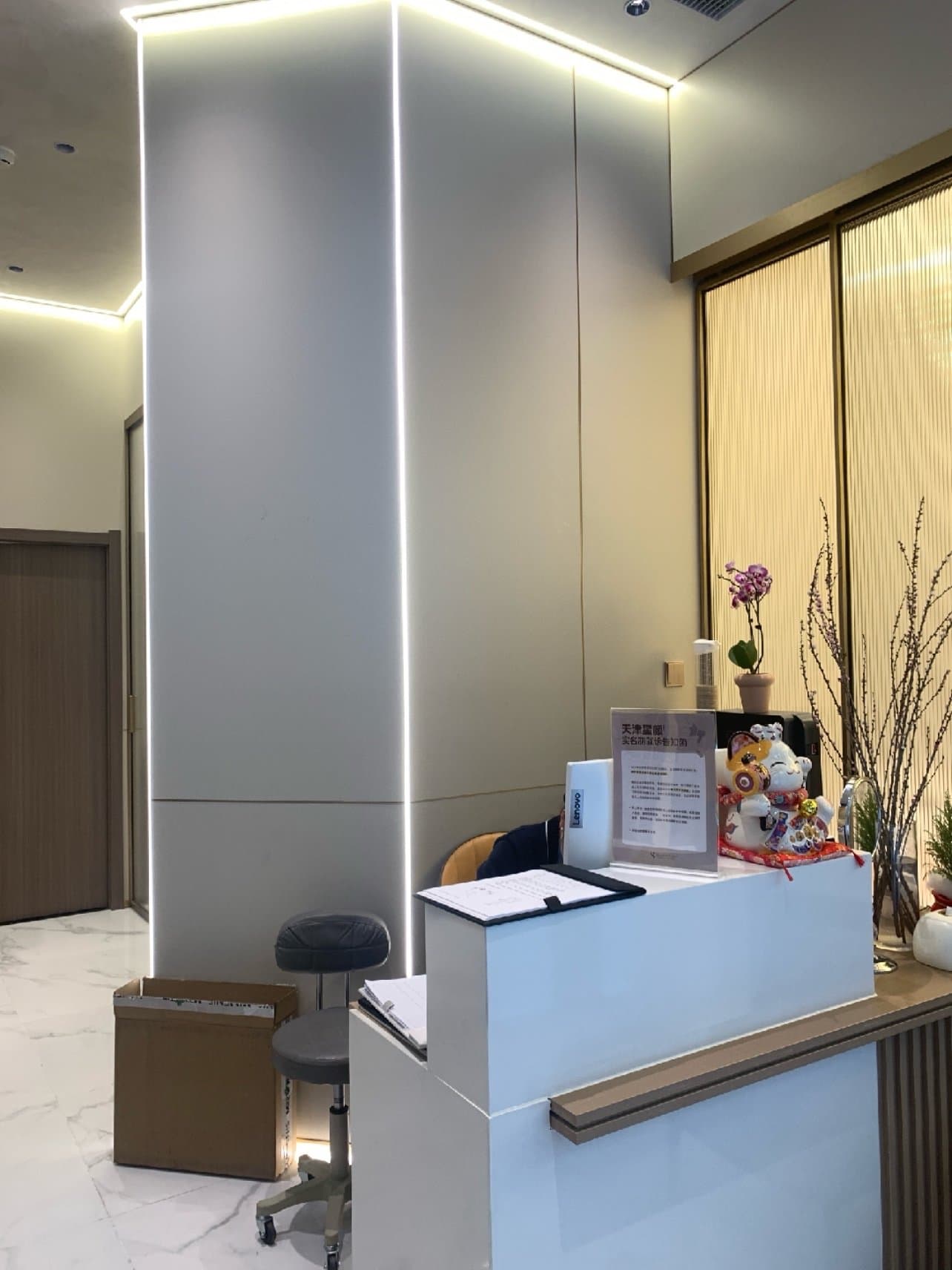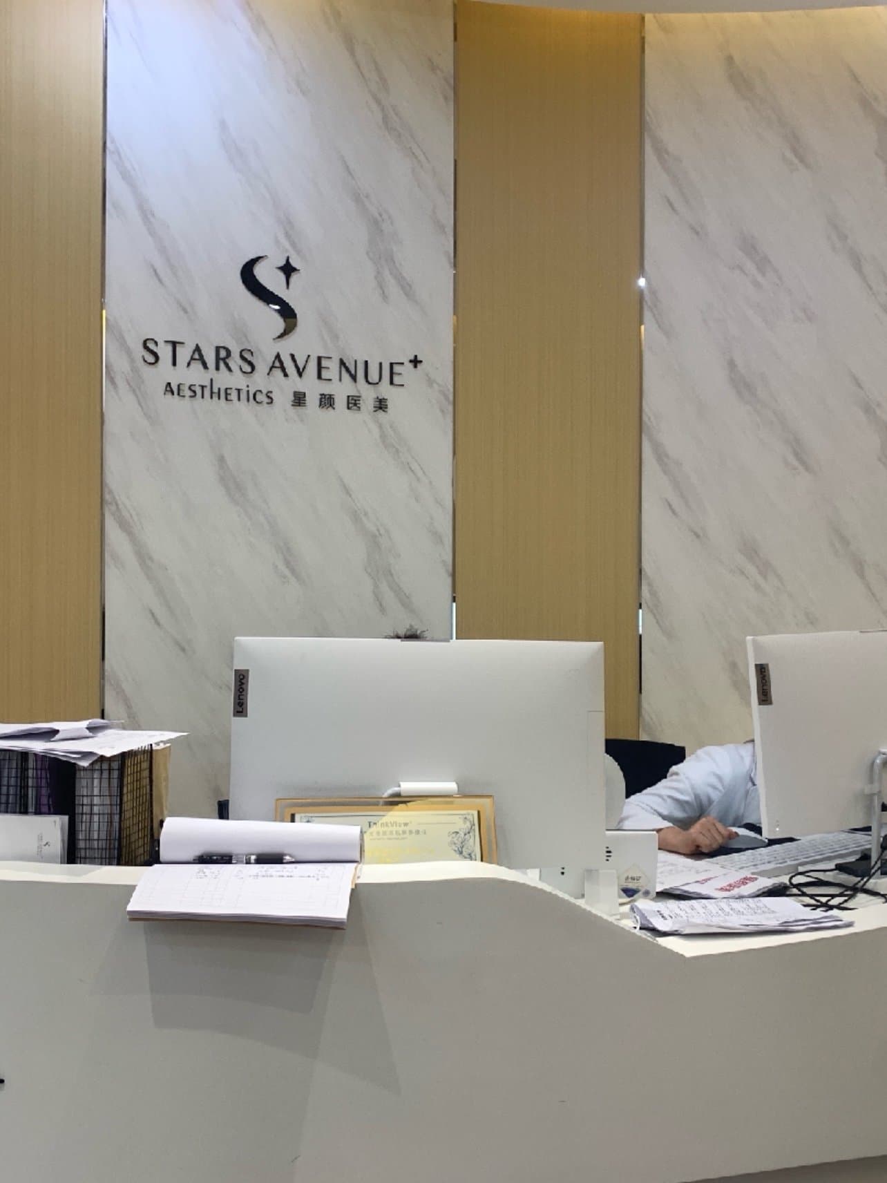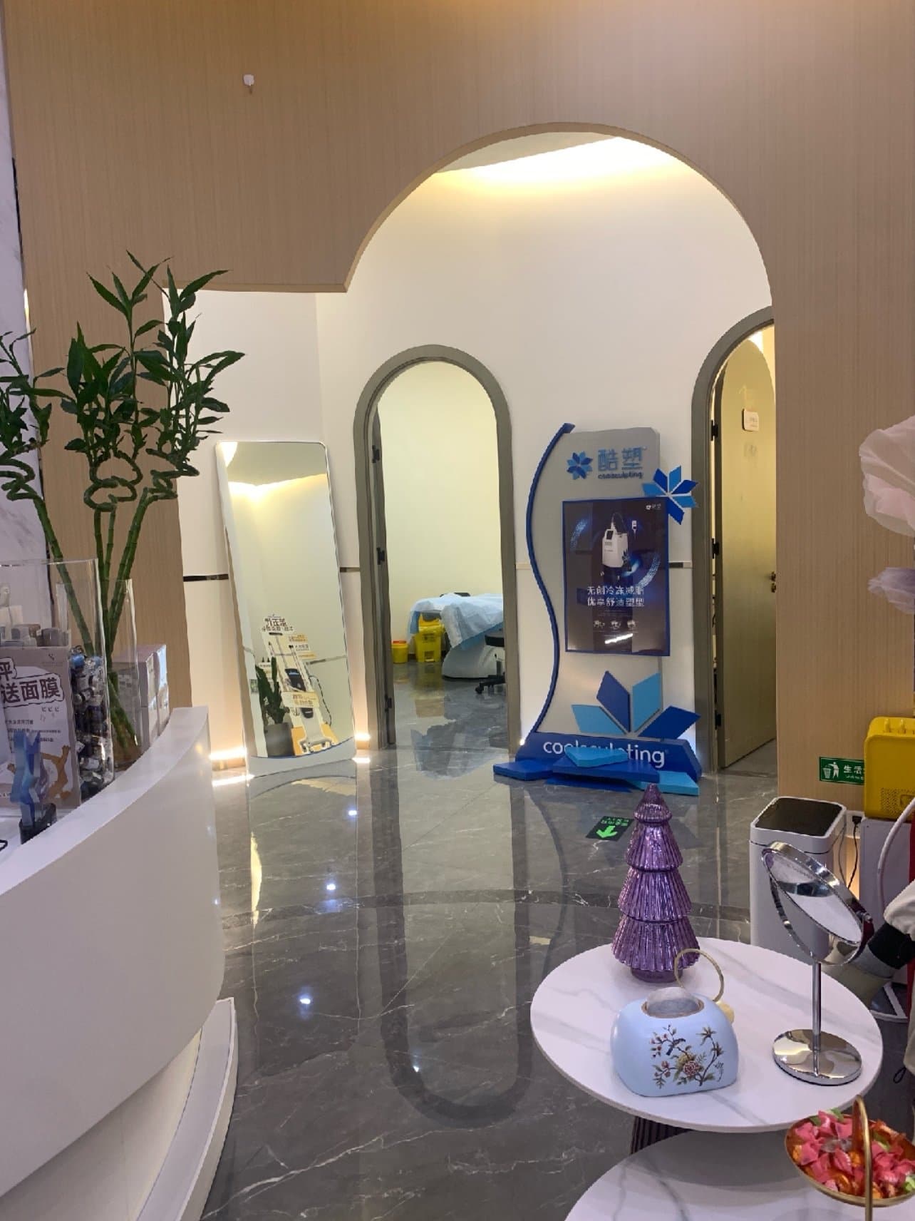 店面一楼主要是接待,比较小,二楼也还算可以吧,有几间屋子做美容,还有办公室做面诊,前台接待等等。