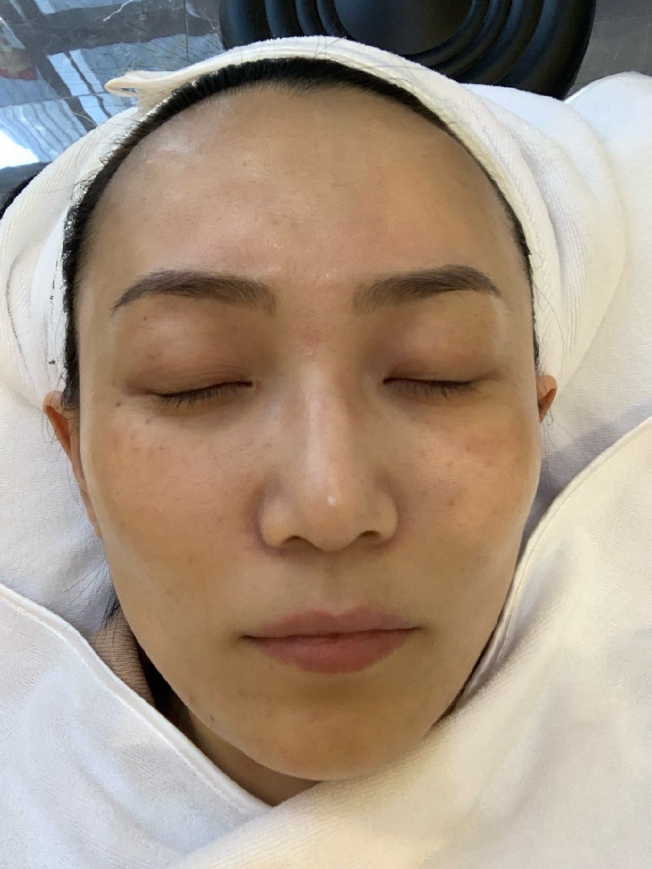 根据我的皮肤状态,院长先给我做了一遍细致毛孔的模式,大概打了2-3min,换了淡斑的模式,大概打了1-2min,最后做了一遍加强,做个过程当中会有一点微微热感,有点烧焦的味道,不过为了变美我们是什么都不怕的😁