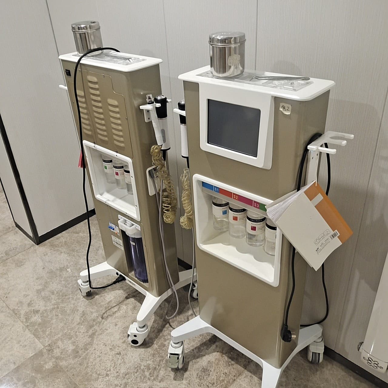 接下来是小气泡的完美组合,精华导入,也就是补水,脸上涂抹精华,用超声波头按摩皮肤,促进精华吸收,做完皮肤很水润。再来一片面膜,完美~