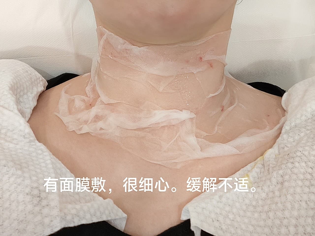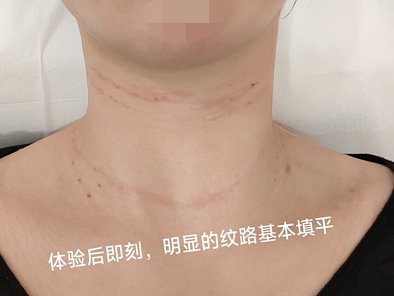 ✊体验前变美诉求:锁骨上方有明显的颈纹✊项目体验过程:清洗后敷麻药,这次麻药敷了有半个小时,打针的时候一点都不痛。而且打完针之后,院方还安排敷了一个面膜,有助于