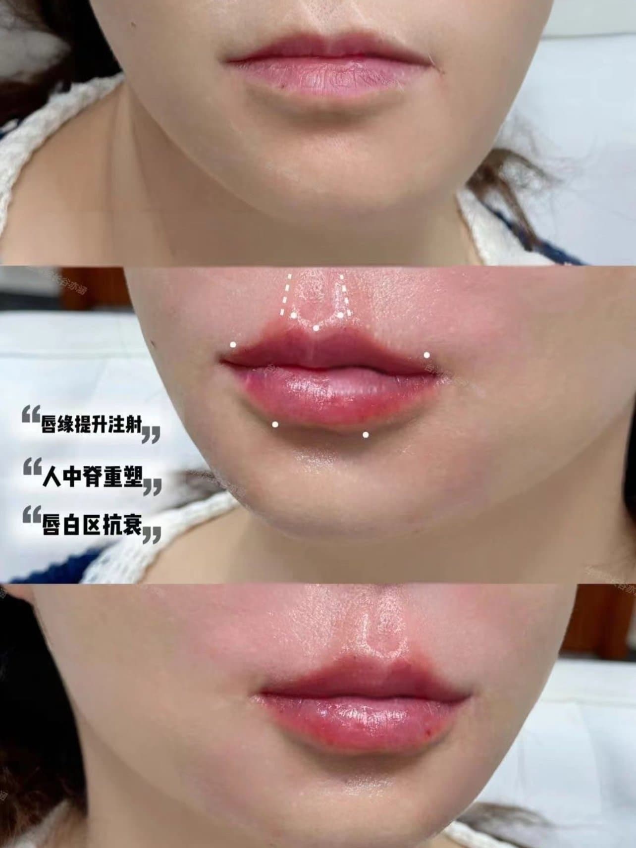 项目体验过程:我的嘴唇有一些薄,但是上下唇的比例一致,嘴角比较平,唇峰也不明显。徐院给我设计了最适合的方案,玻尿酸注射上唇珠同时让M字唇峰成型,玻尿酸注射丰下唇,术前进行敷麻半个小时,所以注射的时候没有什么痛感,徐院也很熟练,十几分钟就完事了,整个过程比我想象的轻松。