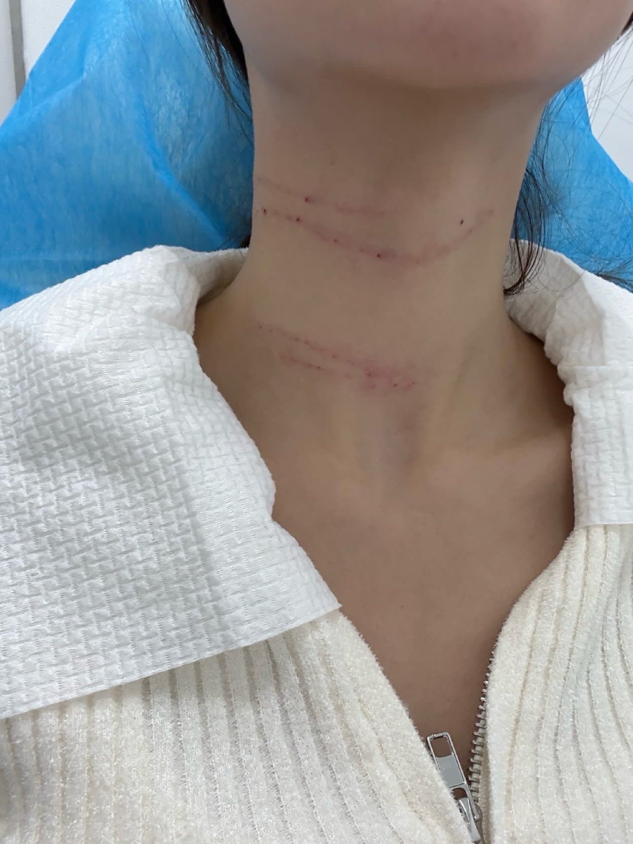 体验前变美诉求:颈纹从小就有,且比较明显,看着显老气项目体验过程:来院之后咨询就由护士带领填写资料后就敷表麻,20分钟后,由医生操作,护士负责侧面打光,很细心耐