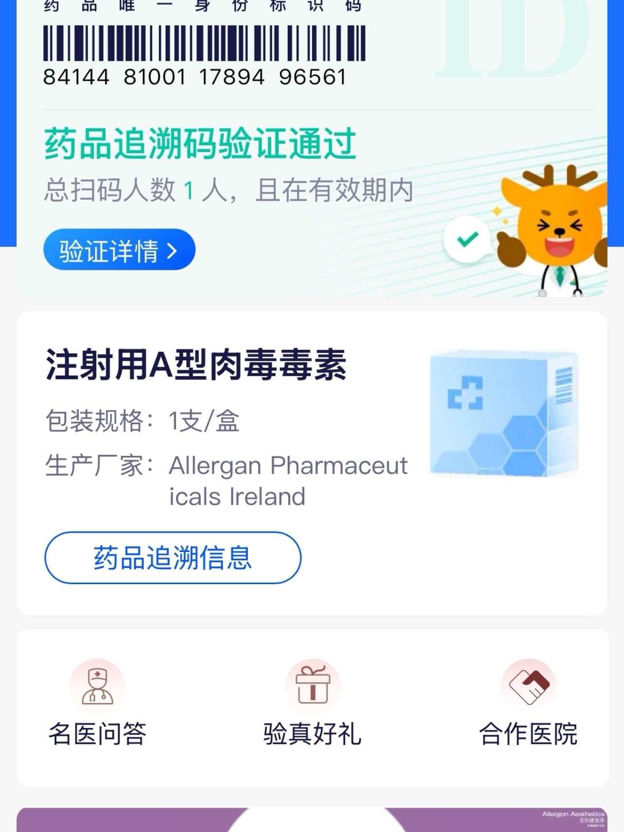 这次体验非常好~而且我还扫码了药的 是正品 护士小姐姐也很漂亮也很温柔有耐心 不强制推销 值得推荐😁